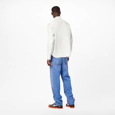 다채로운 플라워 프린트 모티프와 섬세한 LV 시그니처로 앞면을 장식한 셔츠. 퓨어 실크 소재의 유려한 아이템. 오가닉 패브릭으로 완성된 캐주얼한 핏. 숨겨진 버튼 잠금장치.