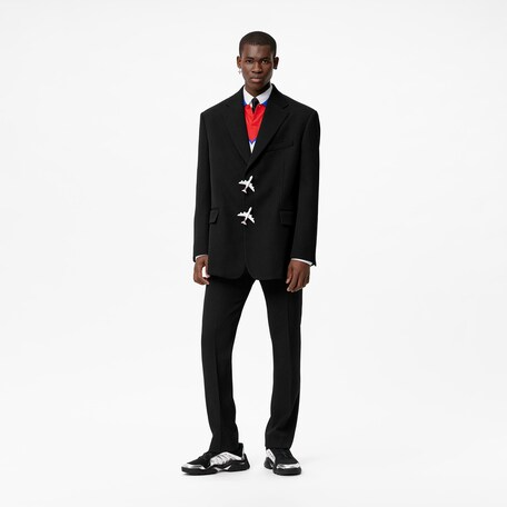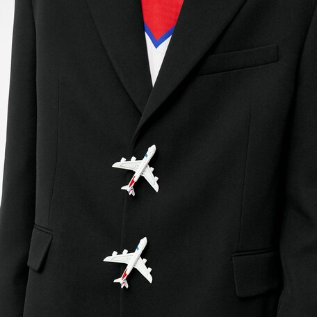 유년 시절의 유쾌한 감성을 더해 상징적인 남성용 디자인을 재해석해 선보이는 재킷. 살짝 루스한 핏. 루이 비통의 여행 헤리티지에서 영감을 받은 두 개의 매력적인 앞면 비행기 버튼. 윤리적인 생산 공정을 거친 울 트윌 소재. 무늬가 없는 안감. 두 개의 앞면 플랩 포켓.
