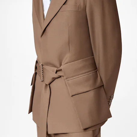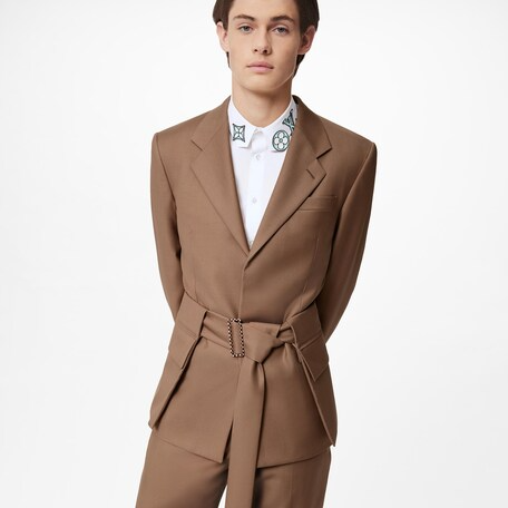 다미에 디테일이 은은하게 드러나는 세련된 벨티드 다미에 재킷. 소맷단 부분의 버튼과 벨트 버클을 장식하는 아이코닉한 모티프가 시선을 사로잡는 디자인. 퓨어 울 소재의 레귤러 핏 아이템. 두 개의 패치 포켓이 연결된 탈착형 벨트. 앞면 여밈 부분의 숨겨진 메탈릭 버튼.