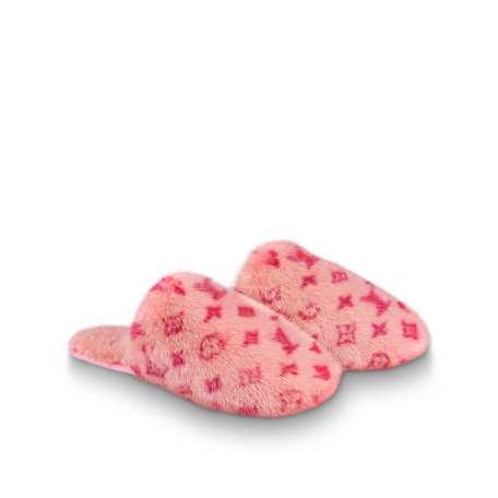 LV 스위트 플랫 뮬은 루이비통의 아이코닉 모노그램 패턴이 프린트된 고급스러운 밍크 퍼를 소재로 제작되었습니다. 이 슬립온 스타이의 가정용 실내화는 안감 또한 전체적으로 밍크 소재로 마감하여 놀라울 정도로 부드럽고 가벼운 느낌을 안겨줍니다. 핑크 색상으로 만나보실 수 있으며, 벨벳 파우치가 함께 제공됩니다.