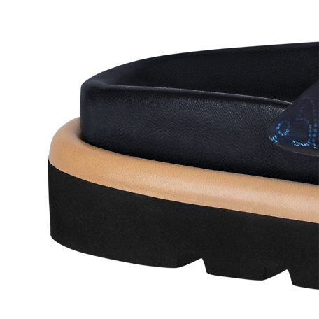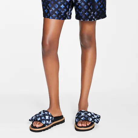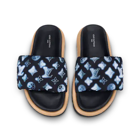 필수 아이템인 필로우 앵클 부츠를 따뜻한 날씨에 어울리는 스타일로 재해석한 풀 필로우 컴포트 뮬. 부드러운 다운 충전재를 넣은 재활용 나일론 소재의 조절형 앞면 스트랩. 나파 가죽으로 가장자리를 마감한 가벼운 마이크로 겉창. 루이 비통의 아이코닉한 모노그램을 재해석한 시즌 특유의 플라이트 모드 패턴을 입힌 스트랩.