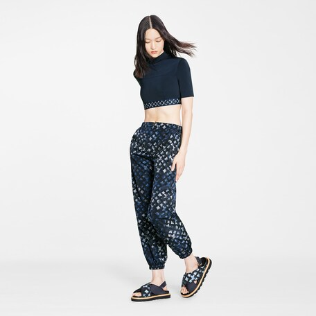 이번 시즌 특유의 눈부신 디테일을 더해 루이 비통의 아이코닉한 실루엣을 재해석한 마히나 모노그램 조깅 팬츠. 빳빳한 나일론 소재. 플라이트 모드 캡슐 컬렉션의 몽환적인 마히나 모노그램 프린트를 전체적으로 입힌 스포티한 분위기의 기본 아이템. 두 개의 실용적인 지퍼 포켓 및 세련된 후크 잠금장치를 강조하는 대조적인 브라스 하드웨어.