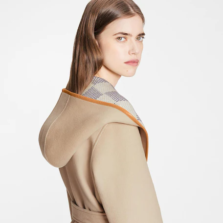 시대를 초월하는 루이 비통의 랩 코트 실루엣에 아이코닉한 디테일을 더해 재해석한 리버서블 다미에 아주르 후디드 랩 코트. 시선을 사로잡는 그래픽한 대형 다미에 아주르 자카드로 한쪽 면을 구성한 리버서블 디자인. 더블 페이스 울 및 캐시미어 소재. 고급스러우면서도 실용적인 넉넉한 크기의 후드. 허리 라인을 더욱 강조하는 매칭되는 양면 벨트와 세련되고 현대적인 감각을 선사하는 가죽 트리밍이 특징.