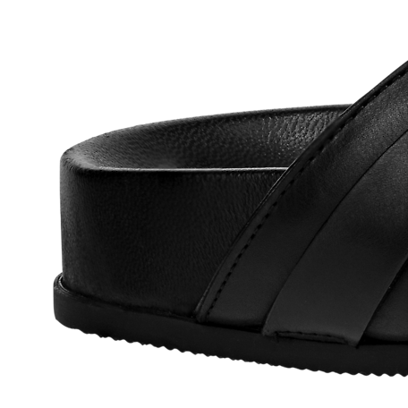 루이 비통의 유서 깊은 다미에 패턴을 양각으로 섬세하게 새겨넣은 상단 스트랩과 실버 톤 LV 이니셜 액세서리 등의 세련된 디테일이 돋보이는 미라보 뮬. 송아지 가죽 소재. 더운 날씨에 이상적인 가벼운 아이템. 편안함을 선사하는 인체공학적 안창과 유연한 고무 겉창이 특징.