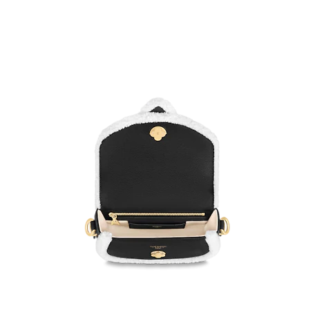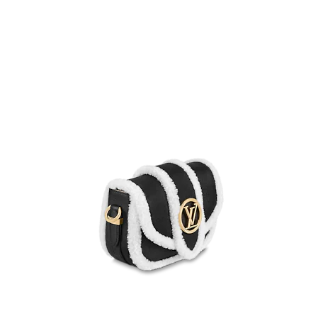그레인 송아지 가죽과 시어링 소재로 특유의 구조적인 라인을 한층 포근하고 사랑스럽게 재해석한 LV 퐁 뇌프 소프트 PM 핸드백. 스포티하면서 세련된 분위기를 선사하는 와이드 가죽 스트랩을 활용하여 다양하게 연출 가능. 블랙 색상의 가죽 및 화이트 색상의 시어링과 매력적인 대비를 이루는 강렬한 골드 톤 LV 서클 시그니처가 특징.