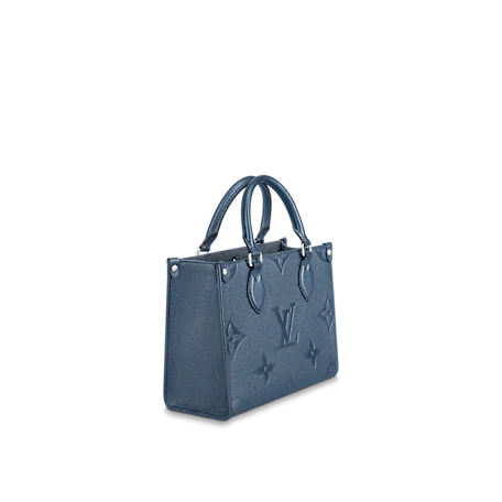 은은한 광택이 흐르는 경쾌한 네이비 블루 색상의 모노그램 앙프렝뜨 가죽 소재로 선보이는 컴팩트한 온더고 PM 토트 백. 양각으로 새겨진 오버사이즈 모노그램 패턴. 오리지널 온더고 디자인을 아이패드 미니, 휴대폰, 지갑 등 필수품을 수납할 수 있는 작은 크기로 재해석한 아이템. 토론 핸들을 손으로 들거나 조절 가능한 탈착형 스트랩을 활용해 숄더 백 또는 크로스 바디 백으로 연출 가능.