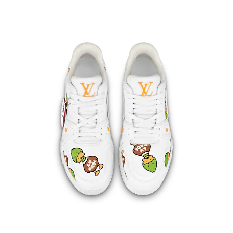 일본의 전설적인 스트리트웨어 디자이너인 니고가 루이 비통의 아티스틱 디렉터인 버질 아블로와의 두 번째 협업을 통해 선보인 LV 트레이너 스니커즈. 화이트 색상의 송아지 가죽 소재. 가죽 제품, 액세서리와 레디 투 웨어를 아우르는 루이 비통 X 니고 컬렉션의 오리 모티프 프린트가 특징. 예술과 패션의 교차로에서 영국의 댄디한 스타일과 일본의 스트리트 문화를 결합하는 니고만의 독특한 감각이 깃든 아이템.