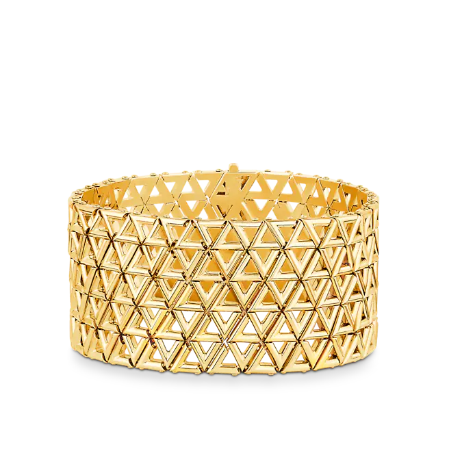 아이코닉한 LV 이니셜이 돋보이는 혁신적인 LV 볼트 팔찌. 18K 옐로우 골드 소재. L과 V 레터링 모티프로 완성한 패브릭처럼 부드러운 메쉬 스타일의 디자인. LV 볼트 컬렉션 아이템. 단독으로 착용하거나 컬렉션 내 다양한 아이템과 매치하여 개성 넘치는 스타일을 연출할 수 있는 액세서리.