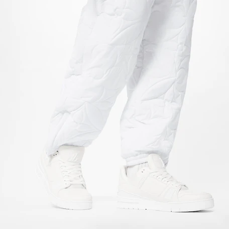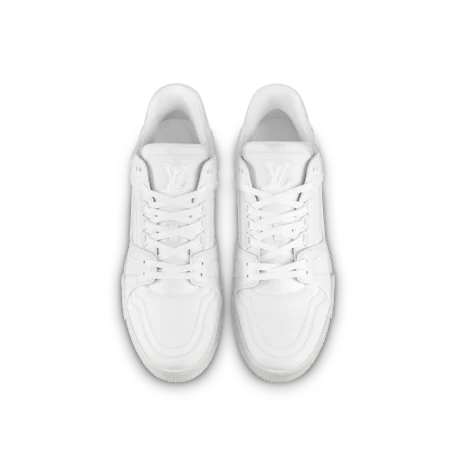 이번 시즌을 맞아 레인보우 레디 투 웨어 컬렉션에서 화이트 색상의 부드러운 송아지 가죽 소재로 선보이는 LV 트레이너 스니커즈. 루이 비통의 아티스틱 디렉터 버질 아블로가 빈티지 농구화에서 영감을 받아 많은 사랑을 받아온 아이템을 재해석한 디자인. 7시간 소요되는 정교한 스티칭 작업으로 완성한 상단 부분. 고무 소재 LV 및 비통 시그니처 디테일.