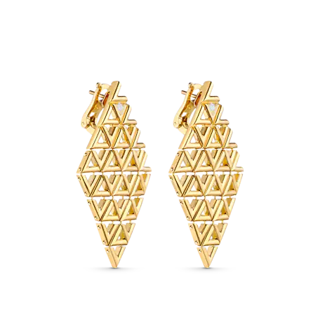 두 개의 반짝이는 다이아몬드가 세팅된 18K 옐로우 골드 소재의 LV 볼트 귀걸이. LV 이니셜을 한층 강조한 LV 볼트 컬렉션에서 선보이는 아이템. L과 V 모티프를 겹쳐 완성한 패브릭처럼 부드러운 메쉬 스타일의 디자인. 단독으로 착용하거나 같은 컬렉션 내 다양한 아이템과 함께 스타일링할 수 있는 액세서리.