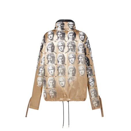 포르나세티 협업 컬렉션의 클래식한 모티프를 현대적으로 재해석한 스포티 메탈릭 버스트 파카. 광택이 흐르는 메탈릭 라소 위에 고대 흉상을 프린트한 디자인. 그래픽한 감각이 엿보이는 에코닐 소재의 대조적인 인서트. 칼라에 접어 넣을 수 있는 실용적인 발수성 후드. 지퍼가 달린 면 캔버스 소재의 포켓. 앞면의 잠금장치를 장식하는 컬렉션 특유의 열쇠 모양 풀러.