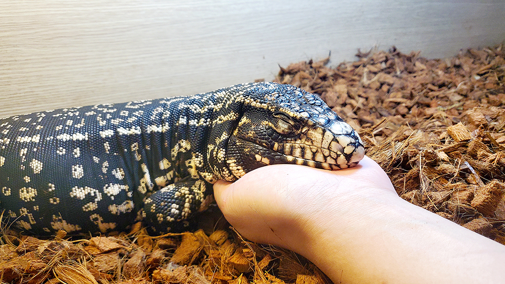 애완동물로서 사육되기도 한다. 테구 중 가장 크지만, 성질은 온순한 편이다. 물론 핸들링을 자주 안 해주면, 지랄견처럼 흑화하는 것은 시간문제이다.